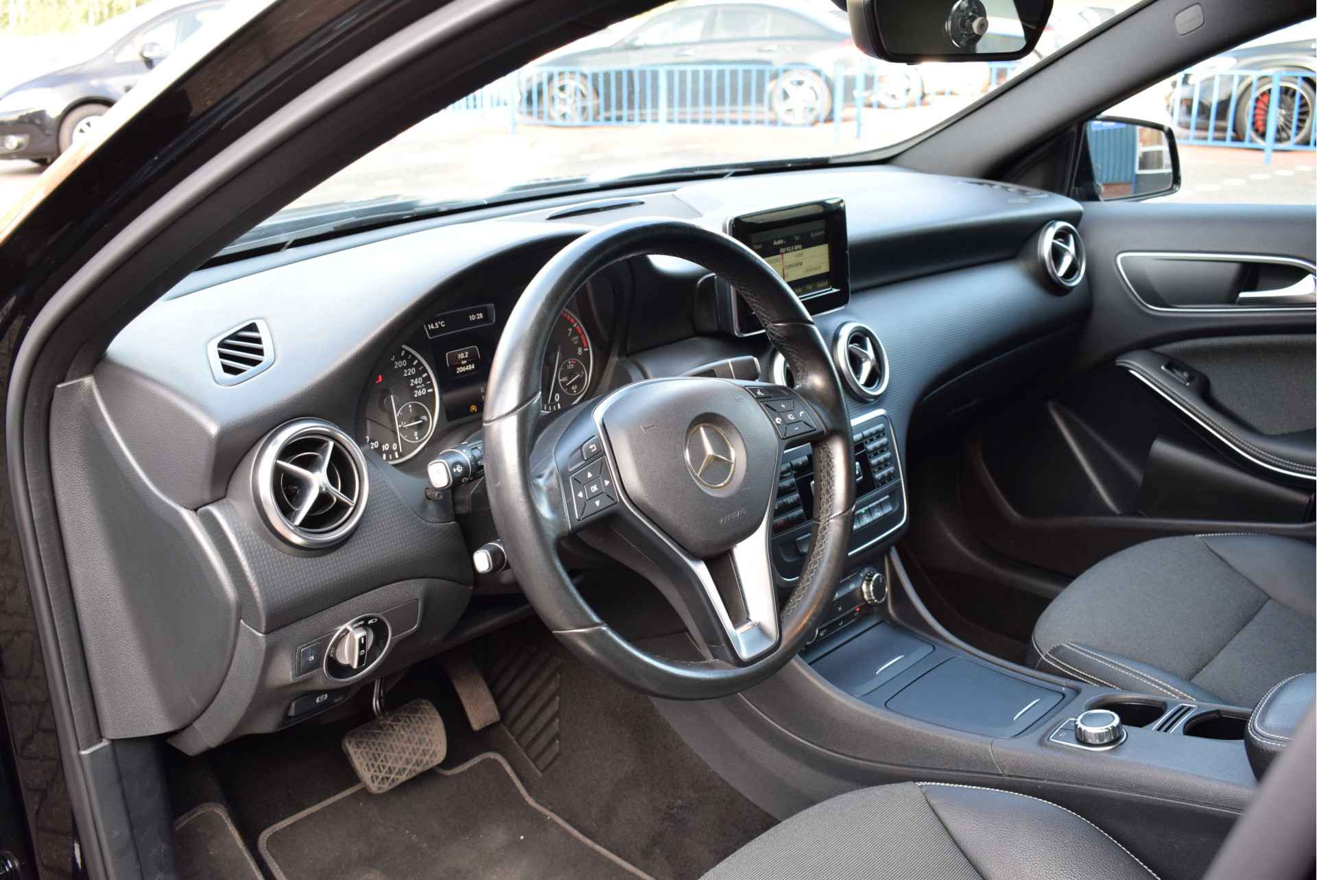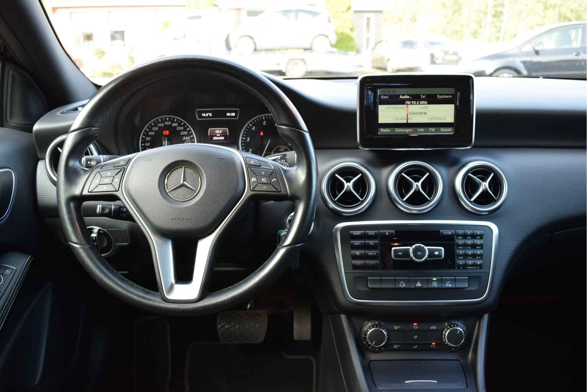 Waarheen gaat de reis? Het full map navigatiesysteem brengt u trefzeker ter plekke! Veilig en handig: het audiosysteem laat zich bedienen vanaf het stuur. De parkeersensoren waarschuwen wanneer u te krap inparkeert of dat ene paaltje niet hebt gezien. Meer rijcomfort en minder brandstofgebruik? Even de cruise control instellen en dan ontspannen rijden! Natuurlijk heeft deze auto ook airconditioning. Ook is de Mercedes-Benz uitgerust met: buitentemperatuurmeter, centrale deurvergrendeling met afstandsbediening en boordcomputer.